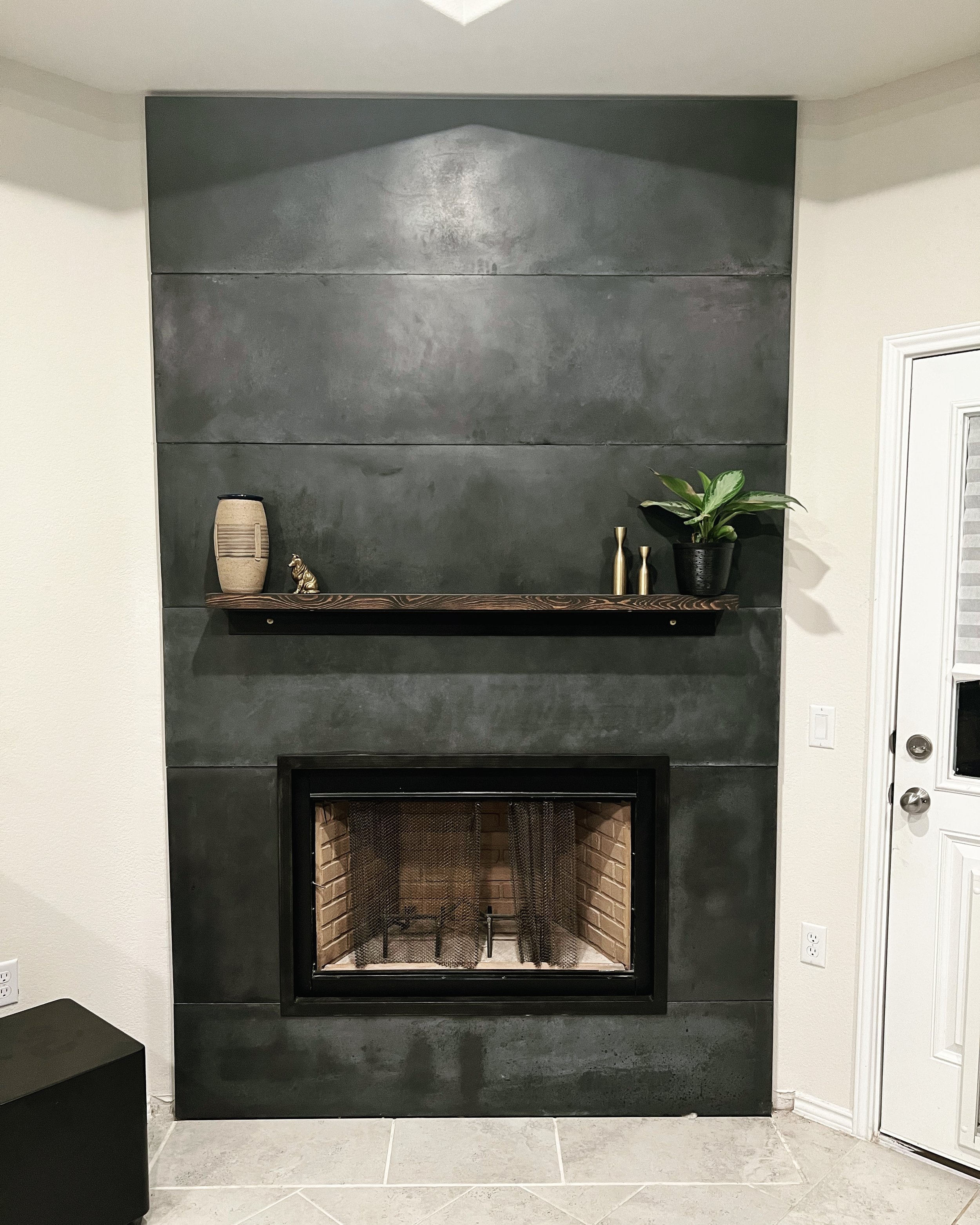 This fireplace was completely transformed with our smooth Dark Slate Scagliola panels giving it a masculine contemporary modern finish.